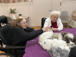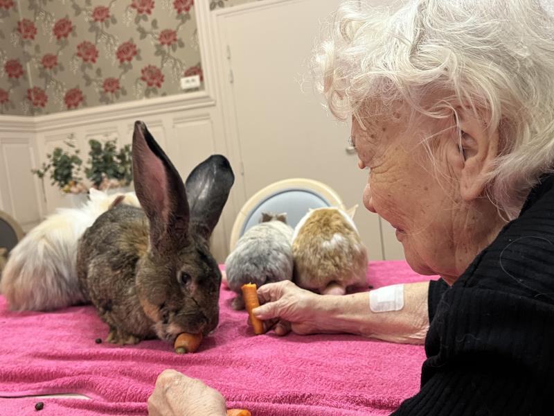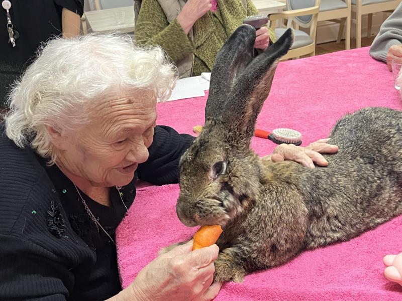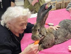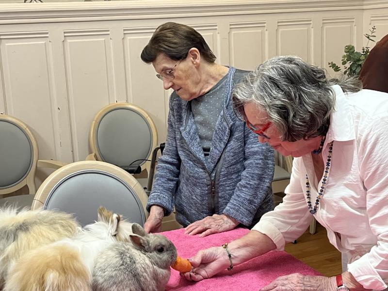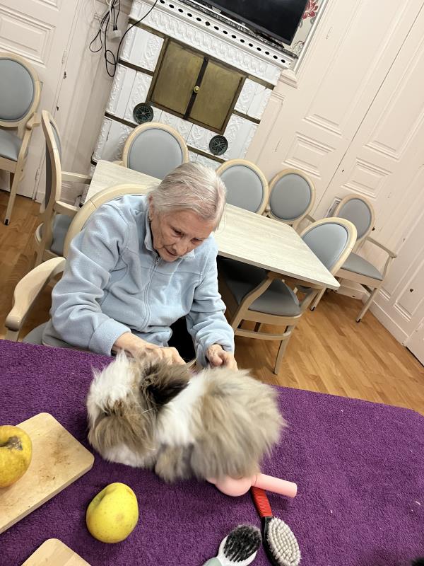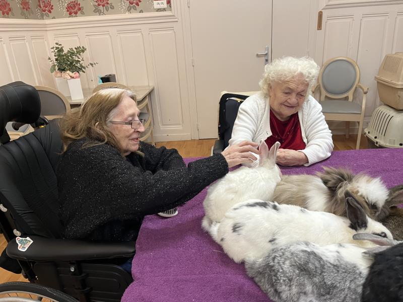 La médiation animale est une activité très appréciée (et attendue !) dans notre établissement. La présence des animaux de Julie favorise un lien affectif spontané et apaisant.