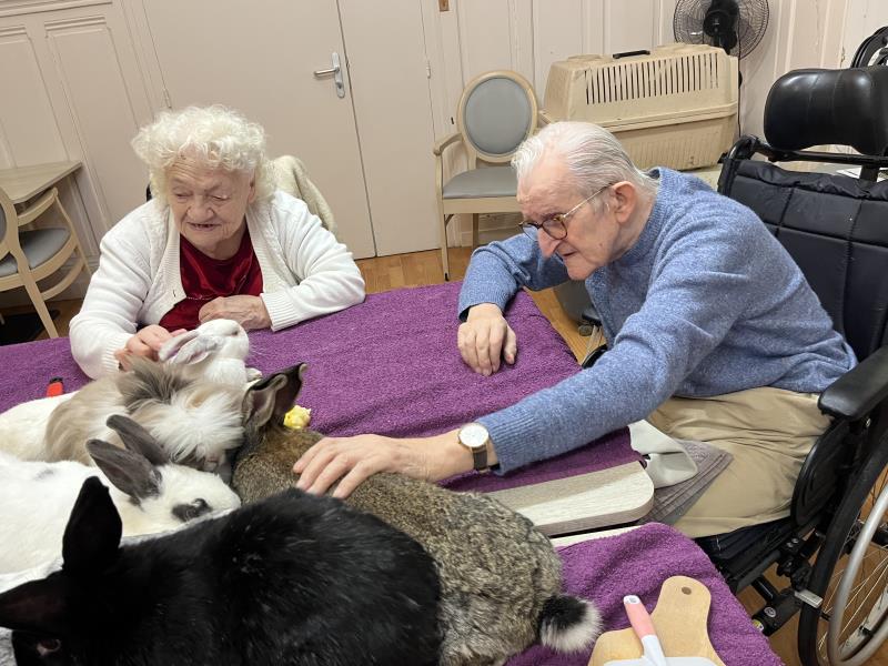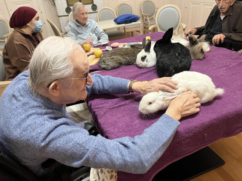 Les résidents ont la possibilité de caresser, observer et interagir avec eux dans un climat doux et bienveillant.