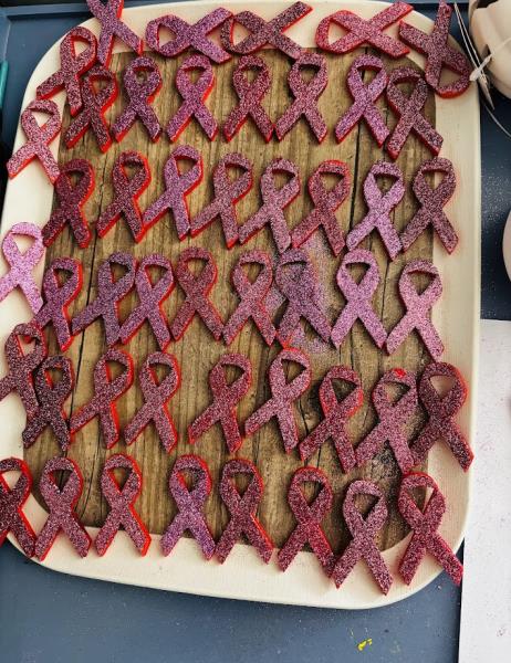 En ce mois d'octobre rose, dédié à la lutte contre le cancer du sein, nous avons renouvelé cette année les petits présents aux équipes, confectionnés avec attention par les résidents.